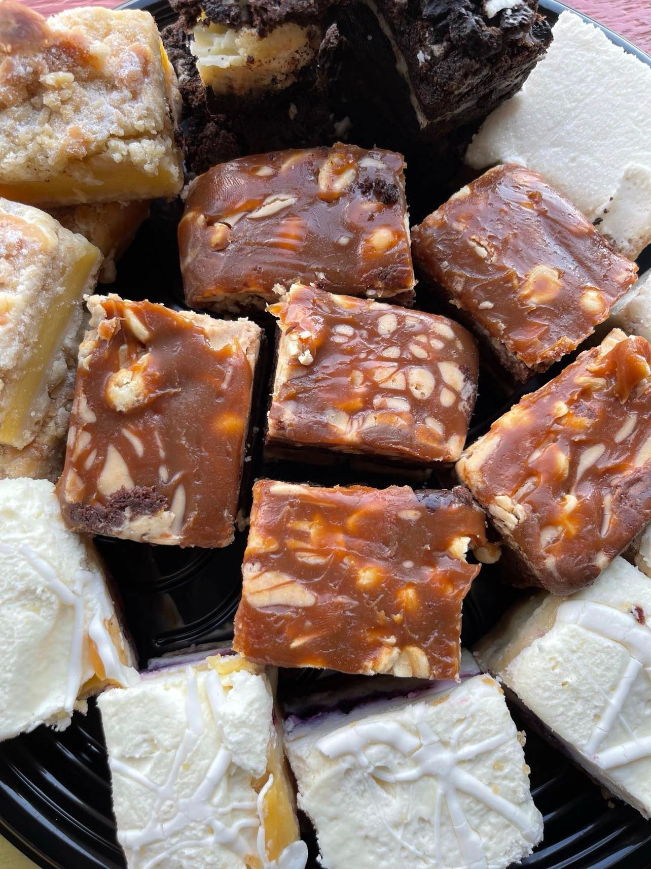Variety of dessert bars and cakes are served daily