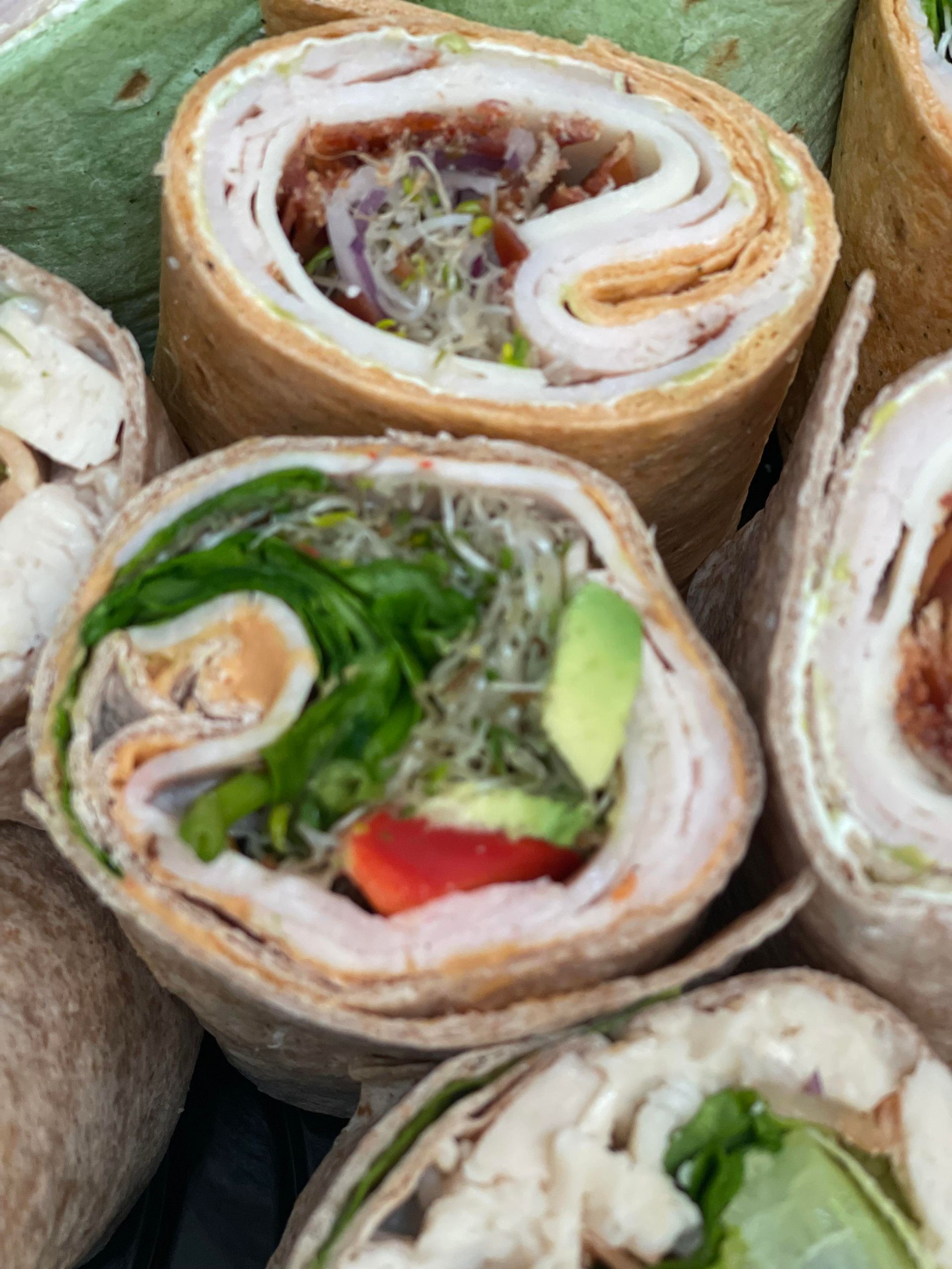 Choice of red onions, lettuce, baby spinach, tomato, sprouts, pickles, black olives, pepper rings, green peppers