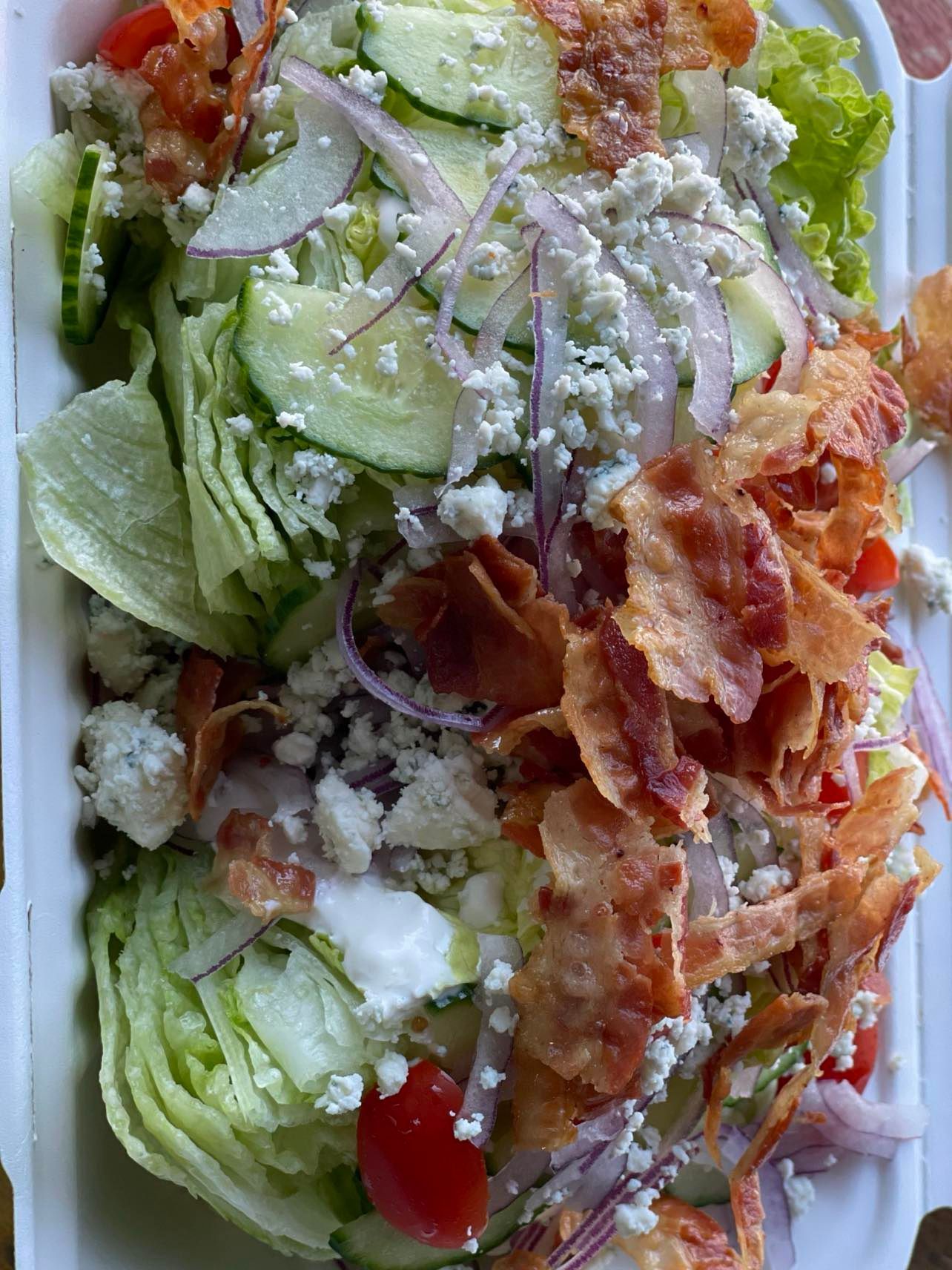 Chicken, bacon, egg, grape tomatoes, avocado, crumbled blue cheese